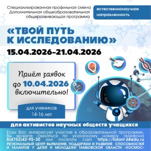 19 марта 2026 года на базе ТОГБОУ ДО «Центр развития творчества детей и юношества» пройдёт финал регионального (национального) трека Международного конкурса научно-технологических проектов «Большие вызовы»…