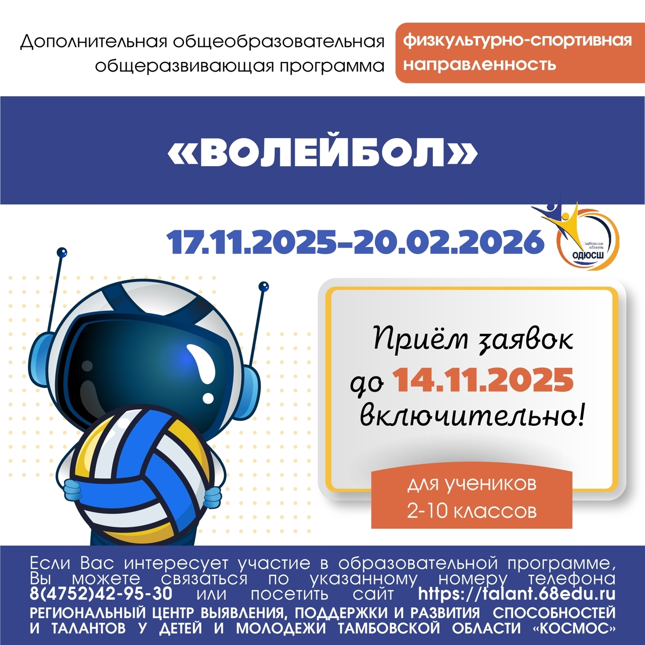 Открыт приём заявок на дополнительную общеобразовательную общеразвивающую программу физкультурно-спортивной направленности «Волейбол»!