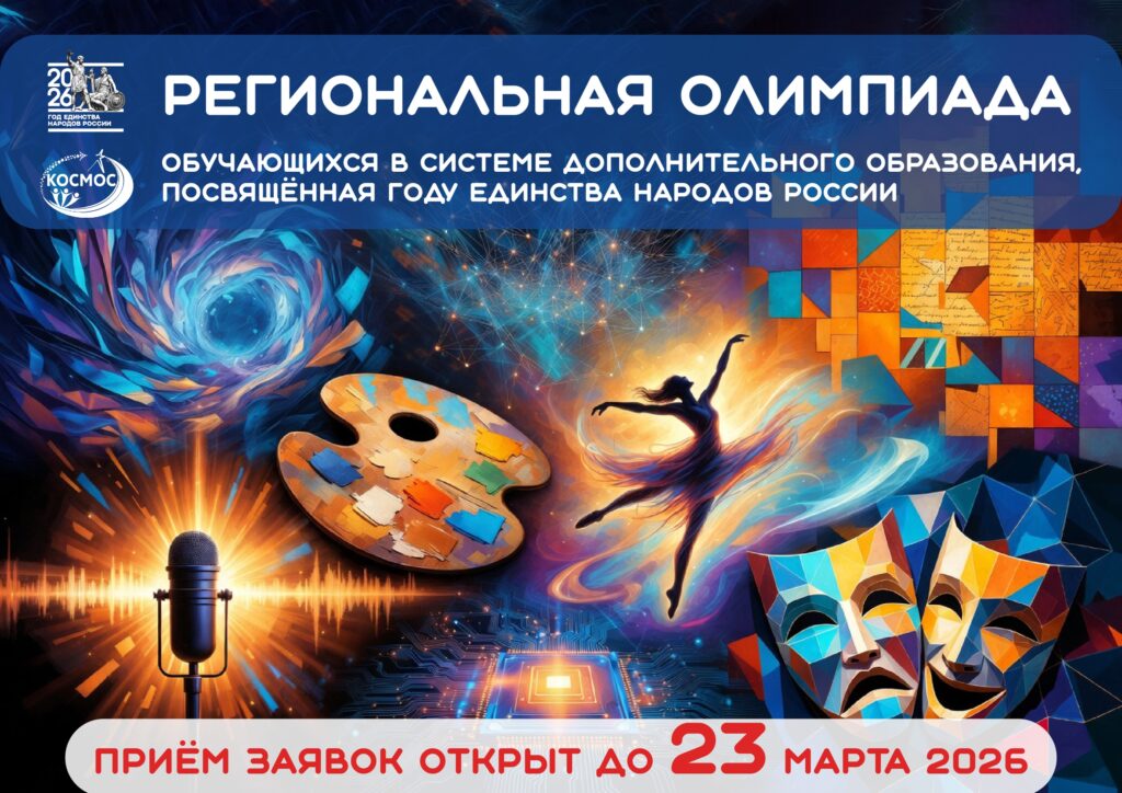 Региональная олимпиада обучающихся в системе дополнительного образования, посвящённая Году единства народов России, состоится с 15 марта по 25 апреля 2026 года.